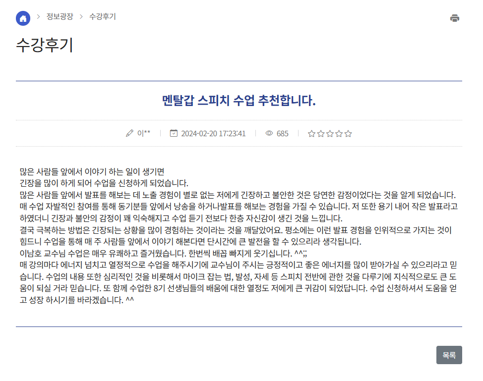 멘탈갑 스피치 수업 추천합니다.(멘탈갑스피치 8기)