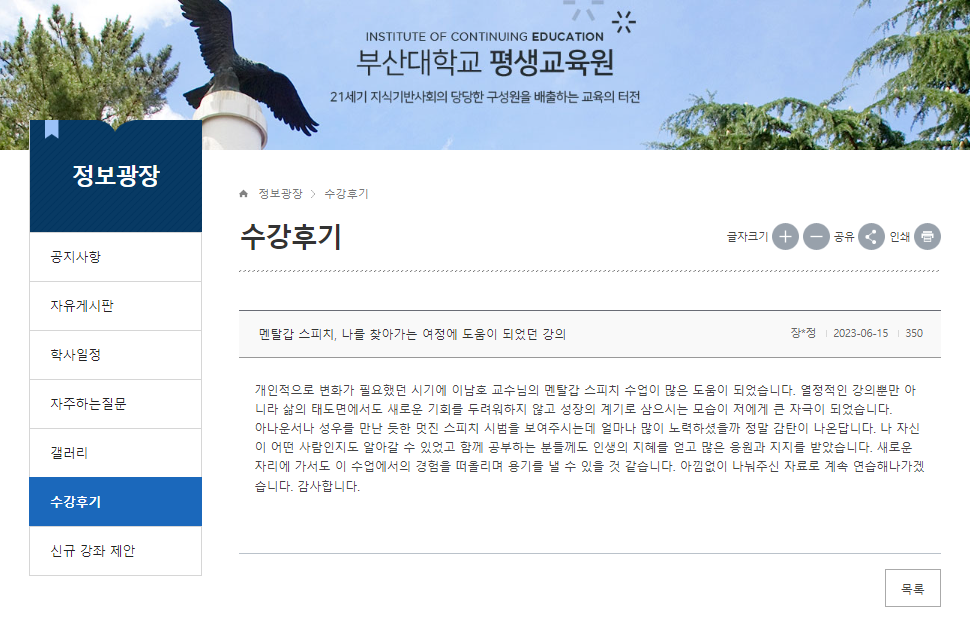개인적으로 변화가 필요했던 시기에 이남호 교수님의 멘탈갑 스피치 수업이