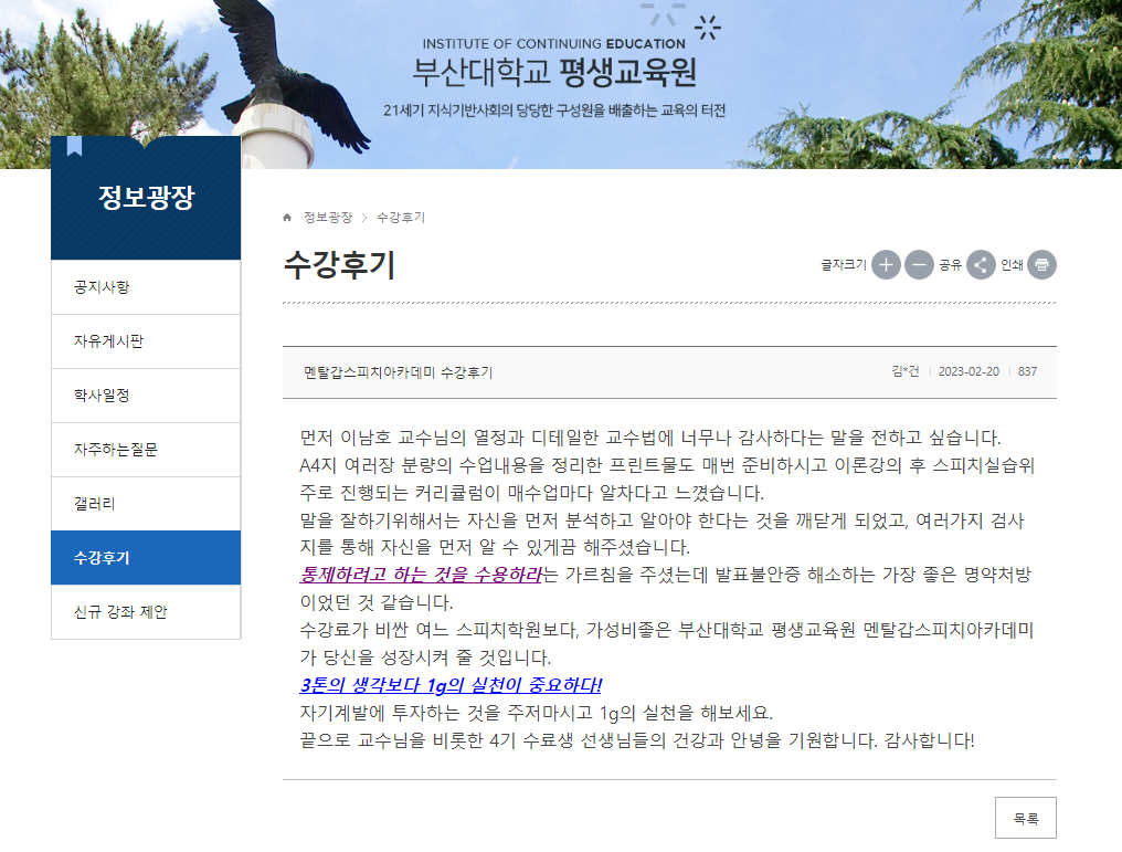 가성비 좋은 부산대학교 평생교육원 멘탈갑스피치아카데미가