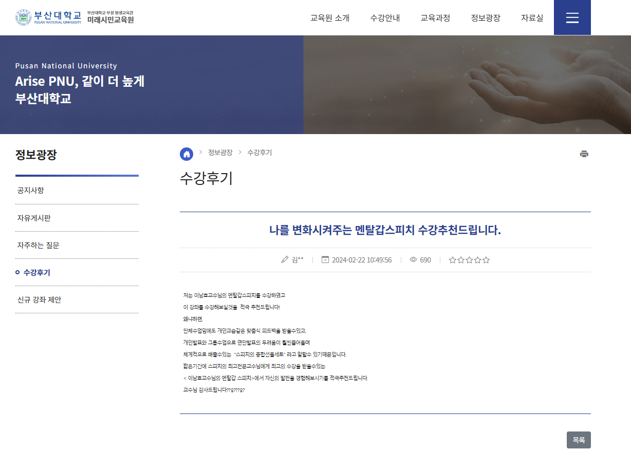 저는 이남호교수님의 멘탈갑스피치를 수강하였고