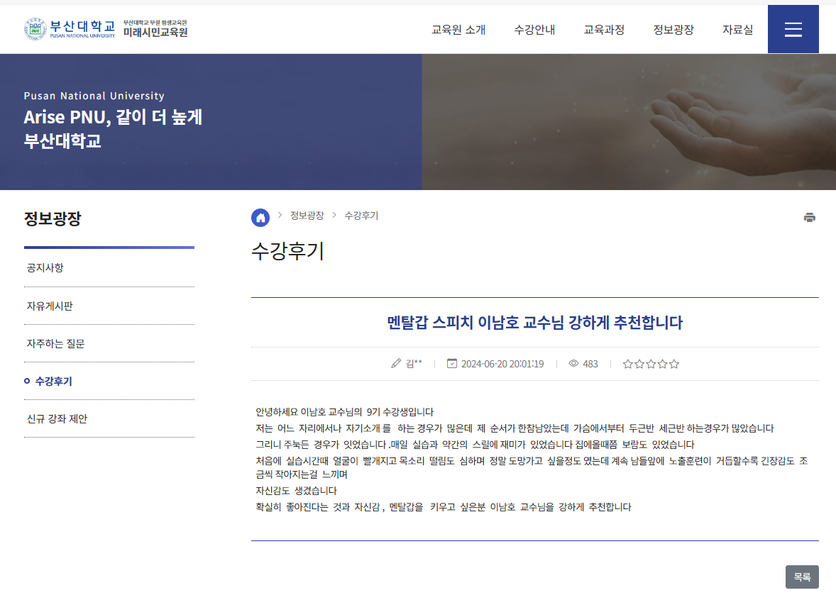 멘탈갑 스피치 이남호 교수님 강하게 추천합니다
